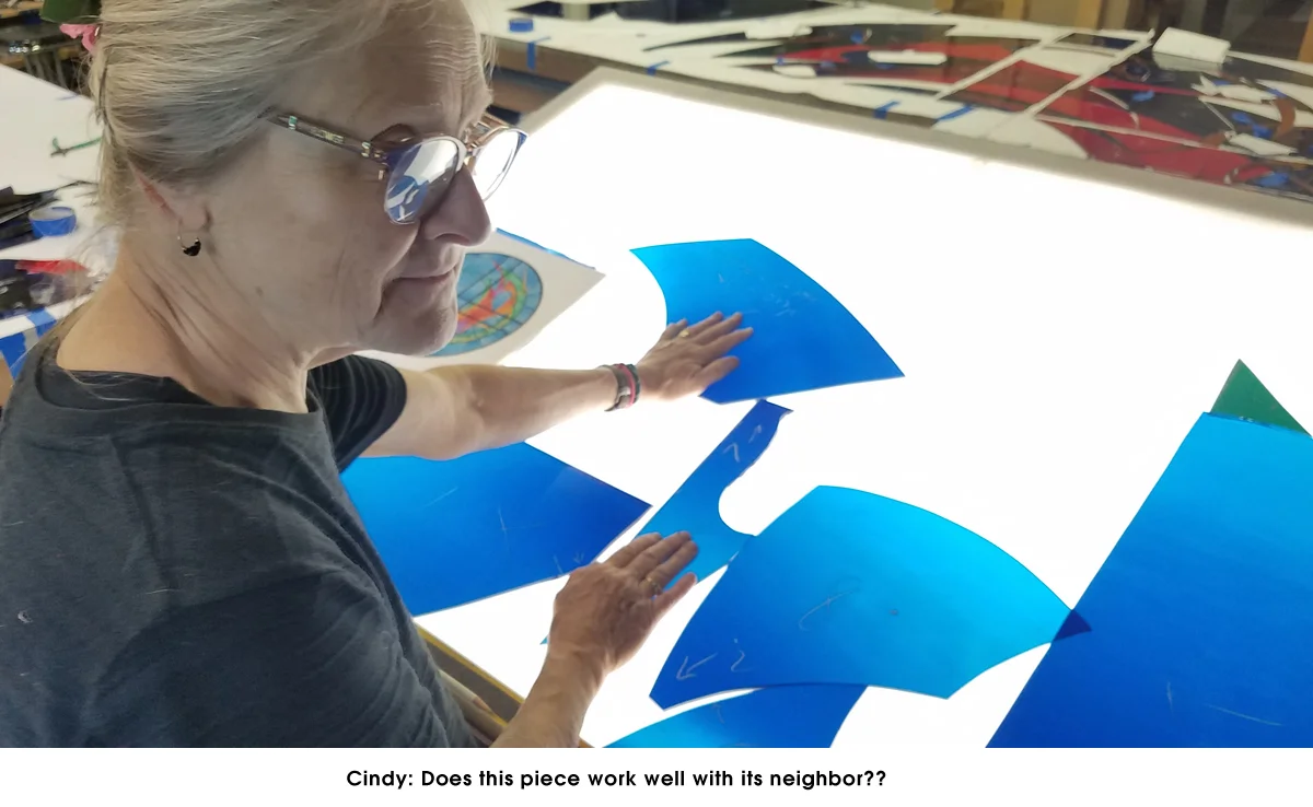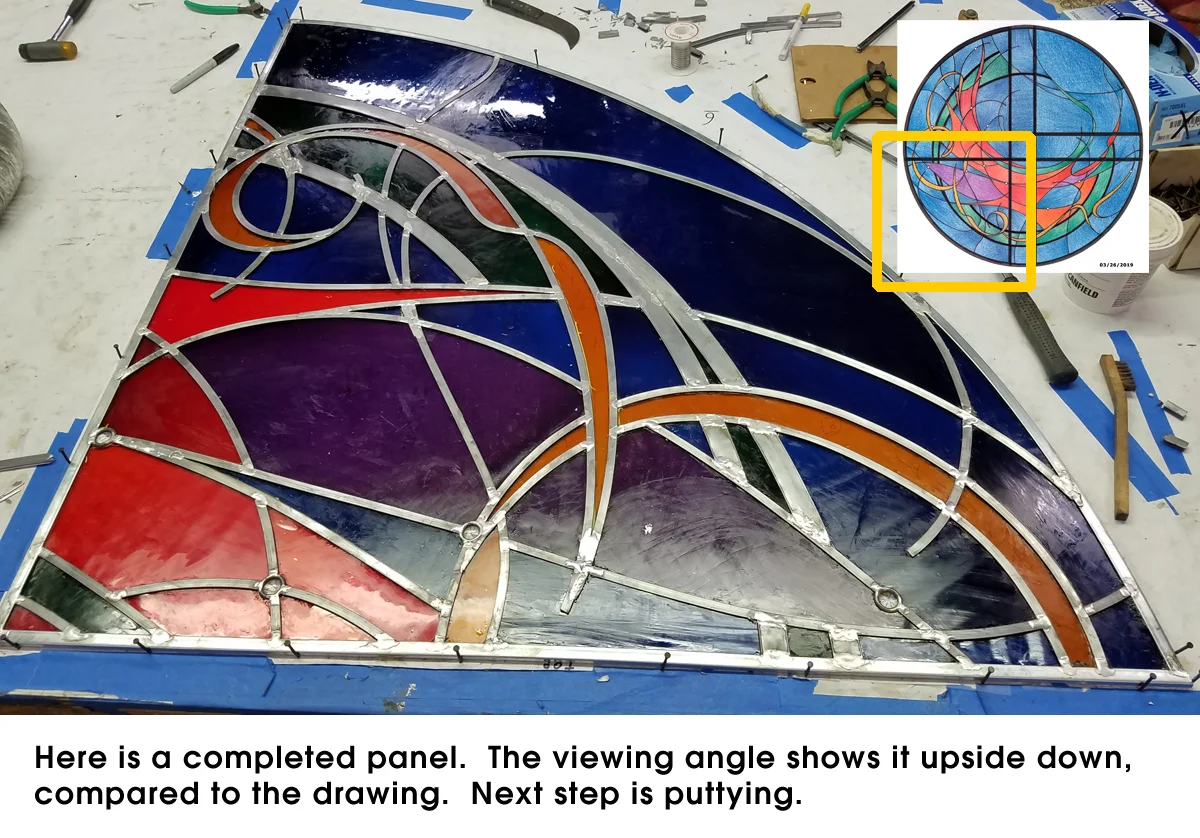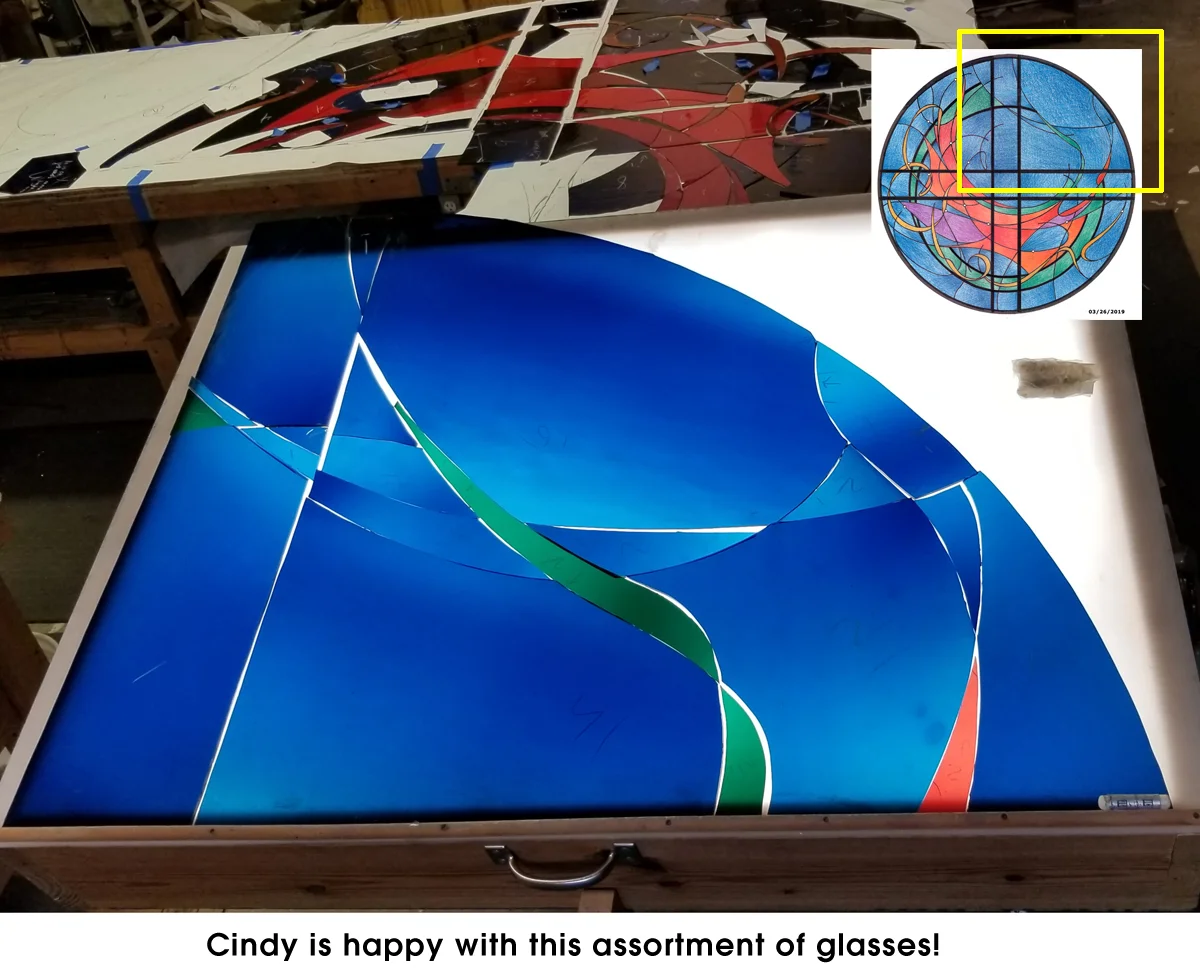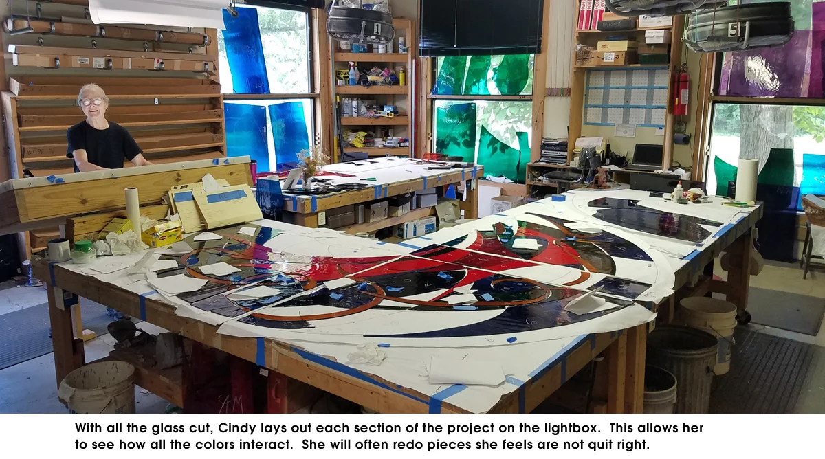 The “cartoons” are created from templates and rubbings off of the frames. This cartoon will have the full-size drawing applied to it.
